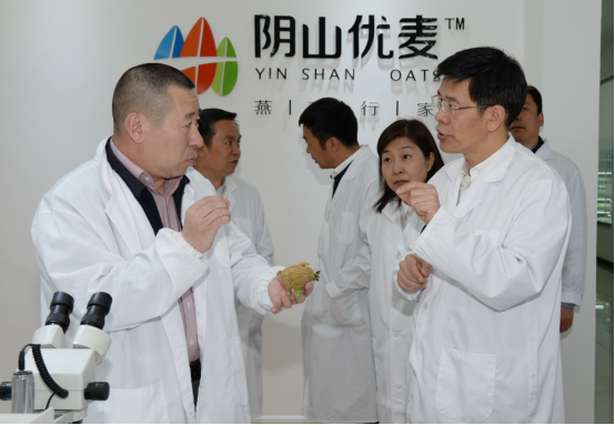 民豐種業(yè)董事長盧文兵對公司近年來的發(fā)展情況以及企業(yè)三產(chǎn)融合的實(shí)施布局情況向黃志強(qiáng)副主席進(jìn)行了詳細(xì)的匯報。近幾年,民豐種業(yè)已發(fā)展成為中國集馬鈴薯、燕麥研發(fā)、種子生產(chǎn)、分級加工、物流倉儲、推廣銷售于一體的現(xiàn)代化農(nóng)業(yè)企業(yè),是農(nóng)業(yè)產(chǎn)業(yè)化國家重點(diǎn)龍頭企業(yè)、國家高新技術(shù)企業(yè)、自治區(qū)扶貧龍頭企業(yè)。子公司陰山優(yōu)麥已發(fā)展成為中國燕麥深加工企業(yè),是自治區(qū)農(nóng)業(yè)產(chǎn)業(yè)化重點(diǎn)龍頭企業(yè)和自治區(qū)扶貧龍頭企業(yè),所生產(chǎn)的燕麥米、燕麥片、燕麥餐杯、燕麥高纖素等燕麥?zhǔn)称蜂N往全國二十多個省市,成為百姓餐桌上的大健康食品。子公司蒙薯食品“年產(chǎn)8000噸低溫油炸薯條、2000噸胡蘿卜脆片加工項目”也將于今年投產(chǎn)。