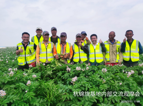 (通訊員 宋江江)2020年7月11日,民豐種業(yè)杭錦旗農(nóng)場組織開展內(nèi)部觀摩交流活動。活動由大區(qū)經(jīng)理、農(nóng)藝師、管理員、基地經(jīng)理、機手等13人參加,在大區(qū)經(jīng)理門大偉的帶領(lǐng)下大家對各地塊馬鈴薯問題進(jìn)行的探討、研究,針對各基地問題做到早發(fā)現(xiàn),早溝通,早預(yù)防,就重大問題進(jìn)行立項研討并提出改進(jìn)方案及措施。同時,對管理成就突出的地塊進(jìn)行現(xiàn)場學(xué)習(xí),共享田間管理方面、經(jīng)驗及做法。