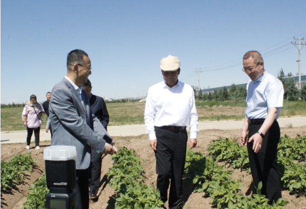在試驗田前,冀福善向段志強(qiáng)一行介紹,公司為科學(xué)種植,合理輪茬,從2015年開始進(jìn)入燕麥產(chǎn)業(yè),實施“馬鈴薯+燕麥”雙輪驅(qū)動發(fā)展戰(zhàn)略,在察右中旗成立子公司——內(nèi)蒙古陰山優(yōu)麥?zhǔn)称酚邢薰?。目前,陰山?yōu)麥已完成投資2.4億元,年產(chǎn)2萬噸燕麥香米、2萬噸燕麥片、2000萬支燕麥杯、6000噸燕麥粉(莜面)和2萬噸藜麥米加工生產(chǎn)線已建成并投入使用,陰山優(yōu)麥?zhǔn)恰白灾螀^(qū)農(nóng)業(yè)產(chǎn)業(yè)化重點龍頭企業(yè)”、“自治區(qū)扶貧龍頭企業(yè)”。同時,公司依托自身在加工薯種植管理技術(shù)、產(chǎn)品質(zhì)量、倉儲能力等方面的優(yōu)勢,于2019年初在察右中旗成立子公司——內(nèi)蒙古蒙薯食品科技有限公司,計劃投資1.5億元,建設(shè)“年產(chǎn)8000噸低溫油炸薯條及2000噸果蔬脆片加工項目”,全力打造烏蘭察布市地標(biāo)性產(chǎn)品,創(chuàng)建全國大的低溫油炸薯條、果蔬脆片深加工企業(yè),已于今年投產(chǎn)。