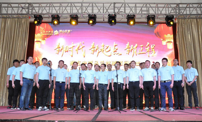 大會以播放短片的形式回顧了公司一年來的各項(xiàng)業(yè)務(wù)發(fā)展情況和取得的成績。副總經(jīng)理邰志東代表公司首先向全體人員致辭,而后在察右中旗烏蘭牧騎《時(shí)代贊歌》、《守望相助》的歌舞里拉開序幕。頒獎環(huán)節(jié),由22名優(yōu)秀行政管理人員、生產(chǎn)管理人員、生產(chǎn)服務(wù)人員、銷售人員和14個(gè)最佳效益獎、最佳質(zhì)量獎、最佳合作伙伴獎、優(yōu)秀團(tuán)隊(duì)獎、董事長特別獎的獲獎代表上臺接受了公司各級領(lǐng)導(dǎo)的頒獎和祝賀。同時(shí),原種生產(chǎn)管理中心、脫毒組培中心、原種生產(chǎn)管理中心、物流倉儲中心用《民豐之歌》和《民豐我們的家》兩首大合唱表達(dá)了對公司的贊美和熱愛之情。最后,大會在烏蘭牧騎《在你偉大的懷抱里》的舞蹈里走向高潮。表彰大會和文藝演出穿插進(jìn)行,環(huán)環(huán)相扣,方式新穎,得到了全體員工的一致好評,也為即將開始的新春生產(chǎn)種植工作注入了活力,帶來了動力。