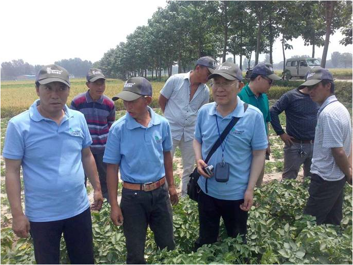 會場上,當?shù)剞r(nóng)牧業(yè)局副局長、糧食局局長就此次觀摩會的開展做了重要講話。民豐種業(yè)副總經(jīng)理張文昌介紹了公司基本情況、2105年馬鈴薯行業(yè)發(fā)展狀況及優(yōu)質(zhì)馬鈴薯種薯選擇等內(nèi)容;民豐種業(yè)質(zhì)量技術(shù)中心孟正平老師就馬鈴薯種植技術(shù)要點及病蟲害防治做了深入詳細的講解。隨后,于田間觀摩現(xiàn)場,孟老師與當?shù)胤N植戶進行了現(xiàn)場互動及答疑,在此同時,我公司與當?shù)胤止苻r(nóng)業(yè)領(lǐng)導(dǎo)就當?shù)匚磥眈R鈴薯的發(fā)展與合作達成初步意向。